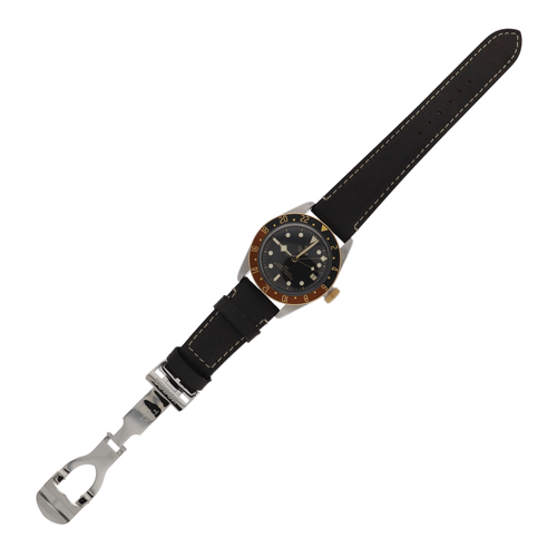 | モデル情報 | チューダー ヘリテージ ブラックベイ GMT S&G 79833MN 「Heritage Black Bay」には、2022年モデルの新しい「ブラック/ブラウン」ベゼルが装備されています。 ロレックスの「GMTマスターII 126711CHNR」を彷彿とさせるデザインながら、 インク針やリベットブレスレットなどの要素がヴィンテージ感を演出。 自社ムーブメント「MT5652」のパワーリザーブは70時間。 クロノメーター認定を受けた精度の高さを誇り、実用上もトップクラスです。 |