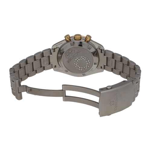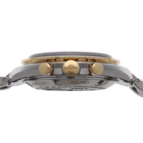 | モデル情報 | 2020年オリンピック 東京大会の開催まで2年を切ったこと祝し、大会のオフィシャルタイムキーパーであるオメガは、2,020本限定の「スピードマスター」を製作しました。 42mmのステンレススティールおよび18Kイエローゴールド製ケースには、ステンレススティール製ブレスレットが付属しています。18Kイエローゴールドは、オメガのロゴ、針、面取りを施したアプライドインデックス、ブラックのダイアルに配された3つのサブダイアルのリングにも使用されています。ミニッツトラックもイエローゴールドカラーです。 ブラックの陽極酸化処理を施したアルミニウム製ベゼルリングには、「スピードマスター」の有名なタキメータースケールが配されています。ケースバックには、2020年オリンピック 東京大会のロゴがエンボス加工で施されています。オメガ キャリバー1861搭載。 |