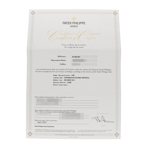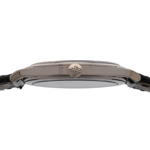| モデル情報 | パテックならではのシンプルなモデルで、自然と高級感が感じられます。 ベゼルに小さなピラミッドが並んだ、上品なクルー・ド・パリベゼル装飾が施されてます。 薄型のケースは裏蓋がスケルトンになっており、ムーブメントがよく見えます。 ムーブメントはCal. 30-255 PSが搭載されています。 パワーリザーブは65時間です。 |