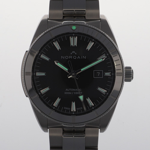 | モデル情報 | 2018年に老舗ブランドが多いスイスで新興メーカーとして創業しました。 実用的で斬新なデザインが特徴です。 N1000「アドベンチャー」 ベゼルは逆回転防止となっています。 |