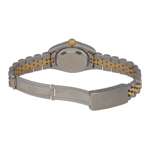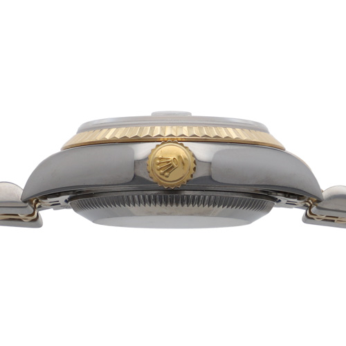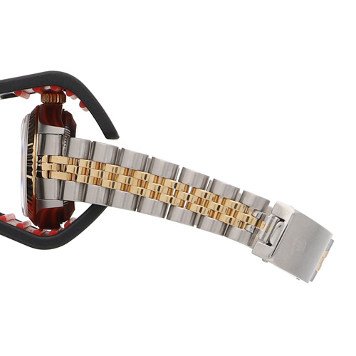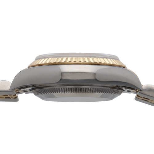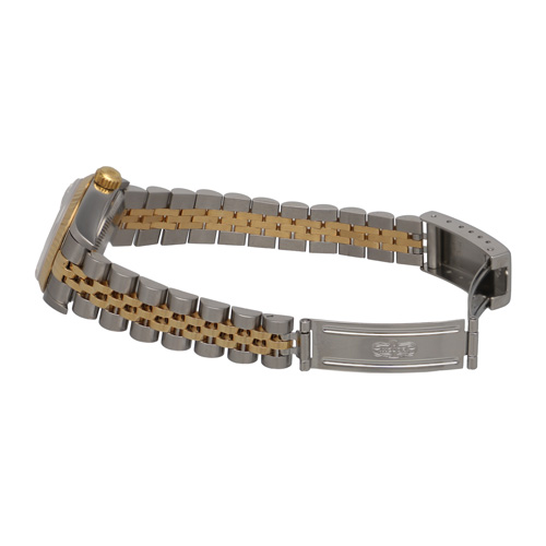 | モデル情報 | デイトジャストは1945年に発売され、現在も人気の高いロレックスの代表的なモデルの一つです。 デイトジャストは様々なサイズやデザインがあり、文字盤や針、インデックスなどのディテールにも様々なバリエーションがあり、多くのユーザーに愛される理由の一つとなっています。 こちらはジュビリーブレスレットにイエローゴールドのフルーテッドベゼル、ホワイトの文字盤に10Pダイヤのインデックスが配置された、高級感のあるデザインが魅力のレディースモデルです。 |