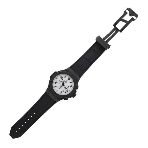 | モデル情報 | こちらは、ブラックセラミックケースにホワイトのダイヤルとラバーストラップを組み合わせた、コントラストが印象的なモデルです。 ビッグバンらしい力強いケースフォルムに、軽量で耐傷性に優れたセラミック素材を採用することで、スポーティでありながら上質な雰囲気を両立しています。 クロノグラフを備えた機能的なレイアウトと、視認性の高いホワイトダイヤルが、日常使いからアクティブシーンまで幅広く活躍する一本です。 黒と白を大胆に配したモノトーンのデザインは、シンプルでありながら存在感は抜群です。 ファッション性と実用性を兼ね備え、コーディネートを引き締めてくれる魅力的なタイムピースです。 |