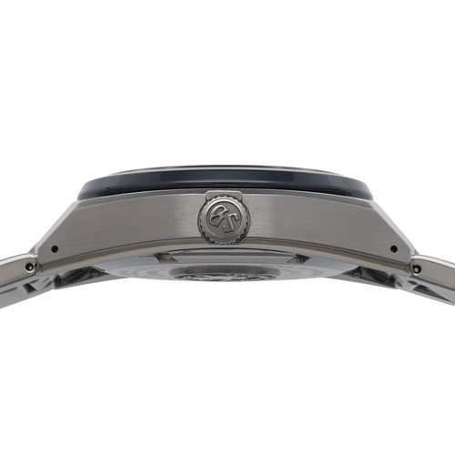 | モデル情報 | グランドセイコー60周年記念で販売された2000本限定モデル。限定モデルならではの仕様として、文字盤にはブランドカラーのネイビーブルーを使用。時計単独の時差修正機能を有した新クォーツキャリバー「9F85」を搭載しており、時計を止めずに時針を単独で動かすことで、クォーツの精度を失うことなく時差が修正できる。 |