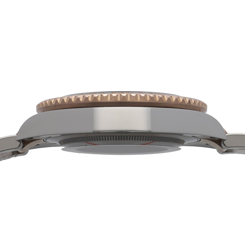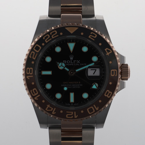 | モデル情報 | 1955年に複数のタイムゾーンの時刻を同時に表示可能なパイロットウォッチとして生まれたGMTマスター。 ブラック×ブラウンのセラミック製ベゼルとエバーローズロレゾールのコントラストにより、非常に美しく上品な仕上がりを感じさせます。 ケースサイズはビジネスでも使いやすい40mmサイズ。防水性は100mです。 |