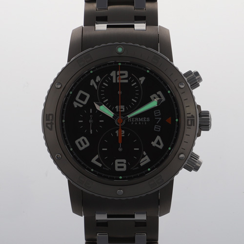 | モデル情報 | エルメスの人気モデル、クリッパーのダイバー仕様です。 ステンレススチールとチタンで軽量で使いやすいモデルです。 クロノ、デイト表示の機能が搭載された、スポーツタイプのクリッパーです。 |