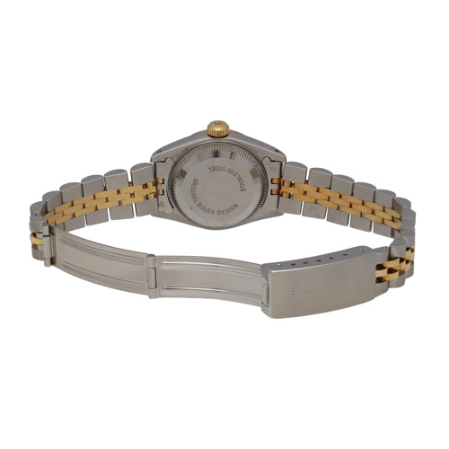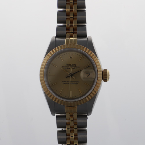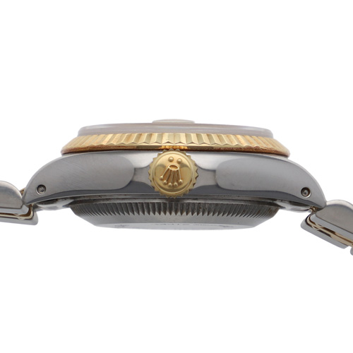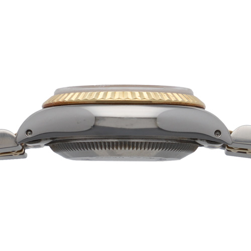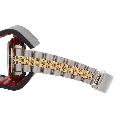 | モデル情報 | ロレックスの定番モデル「デイトジャスト」より、エレガントな印象を持つレディースモデルです。 ステンレススチールと18Kイエローゴールドを組み合わせたコンビモデルで、ベゼルにはロレックスならではの高級感あるフルーテッド加工が施されています。 シャンパンカラーのダイヤルは華やかさと気品を両立したデザインに仕上がっています。シーンを選ばず、末長くご愛用いただけるクラシックなレディースモデルをお探しの方におすすめです。 |