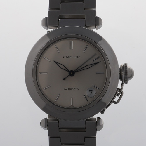| モデル情報 | 4時位置にデイト表示があり、ビジネスでも使いやすいモデルです。 リューズプロテクターを使用しており、カルティエらしいシンプルでクラシカルなデザインは、スーツやジャケットに相性抜群です。 |