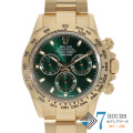 | モデル情報 | デイトナの中でも圧倒的な人気を誇るこちらのモデルは、18Kイエローゴールドケースに鮮やかなサンレイグリーンダイヤルを組み合わせた、まさに「グリーンデイトナ」と呼ぶにふさわしいモデルです。 角度によって表情を変える深みのあるグリーンと、ゴールドの輝きが生み出すコントラストは、他のデイトナとは一線を画す存在感を放ちます。 自分だけの特別な一本を求める方にもおすすめできる至高のモデルです。 洗練されたデザインと確かな性能を兼ね備えた「グリーンデイトナ」が、圧倒的な存在感をもたらします。 |