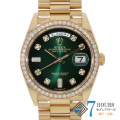 | モデル情報 | デイデイト、日付と曜日機能が付いた、人気のモデルです。 バゲットカットダイヤを含む10カ所のインデックスとベゼルにセッティングされたダイヤがラグジュアリーな印象のモデルです。 ムーブメントは2015年に登場したCal.3255が搭載されています。パワーリザーブは約70時間です。 |